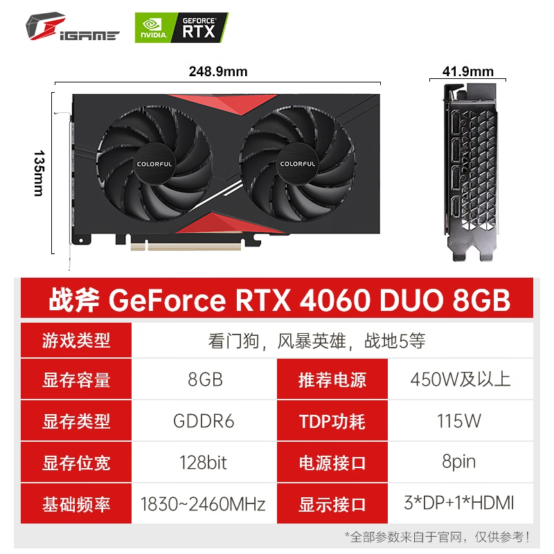 七彩虹战斧RTX4060显卡京东优惠至2549元