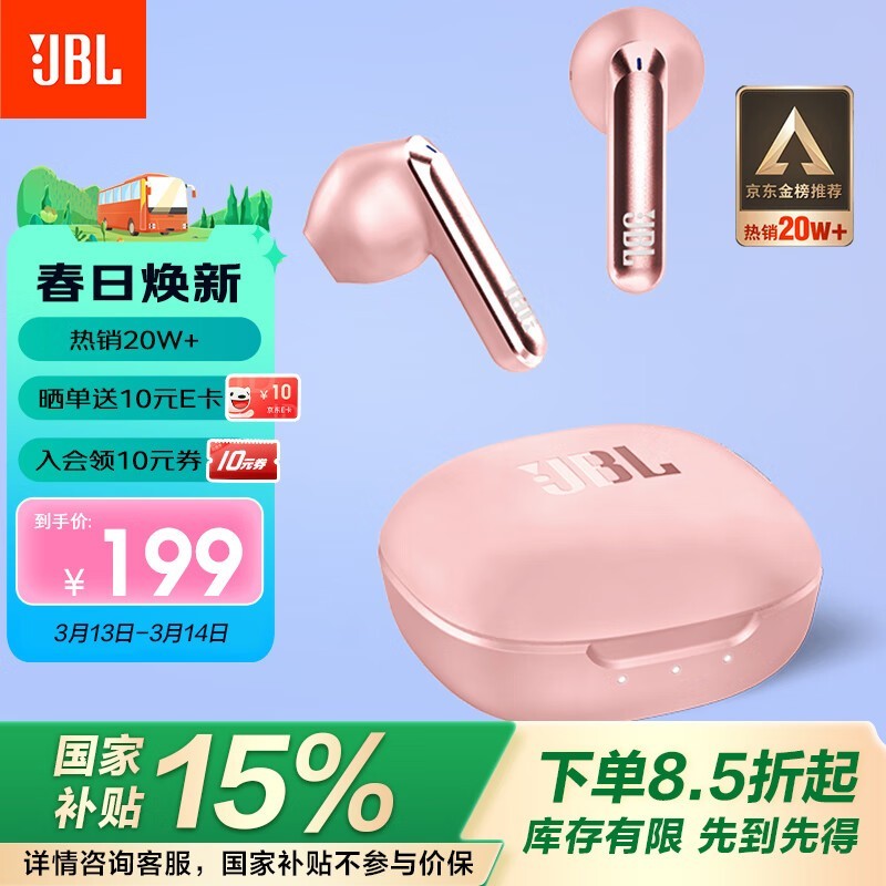 JBL樱花粉蓝牙耳机优惠,原价199现152.15
