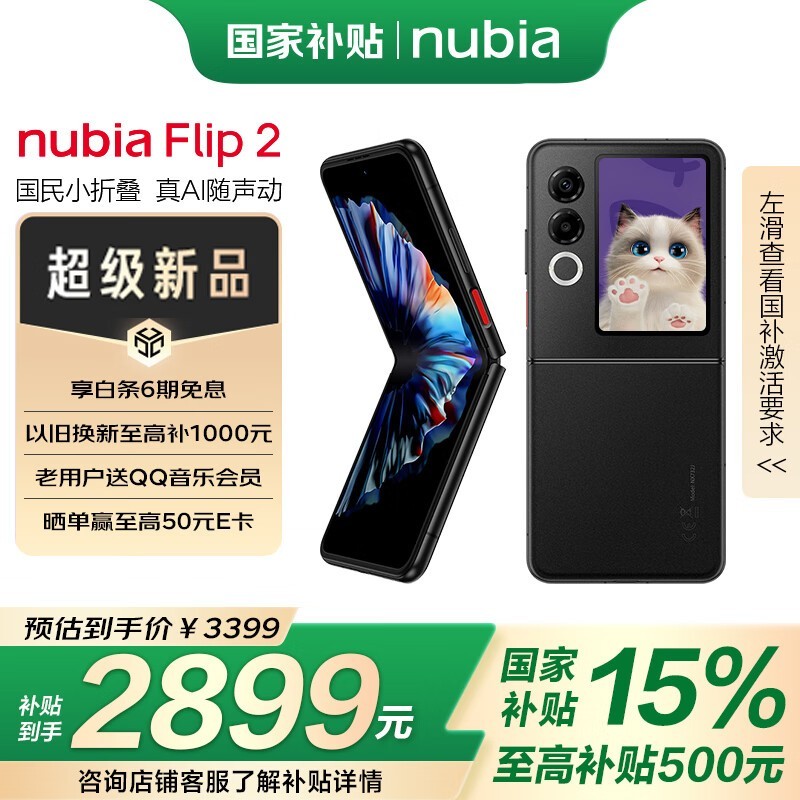 努比亚Flip 2 5G星光黑版,2882元可入手