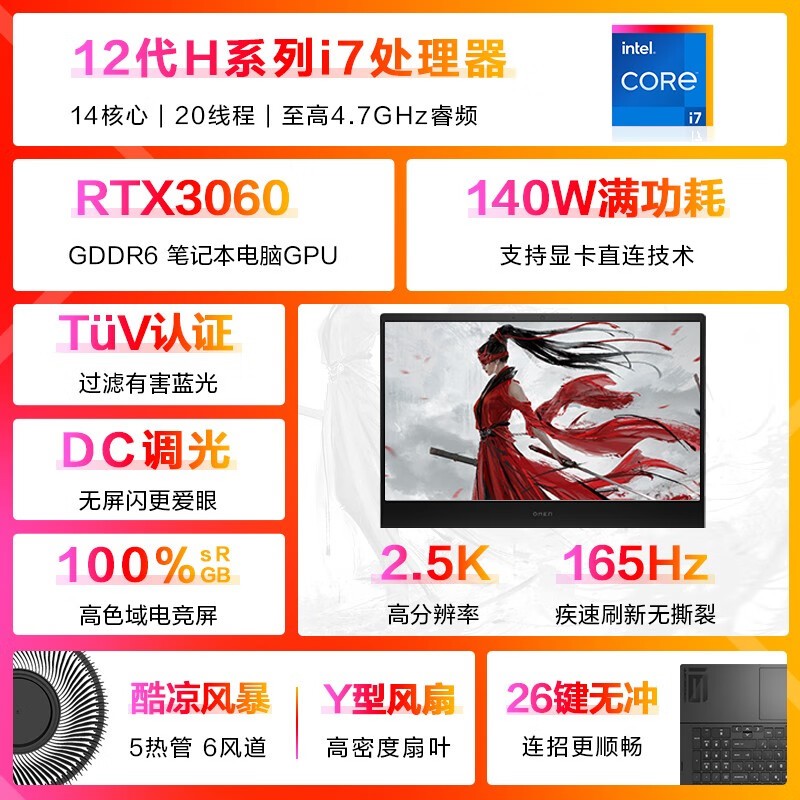 惠普暗影精灵8 Pro满血RTX3060独显直连游戏本
