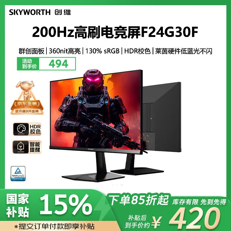 创维F24G30F电竞显示器23英寸180Hz高刷新率仅419元
