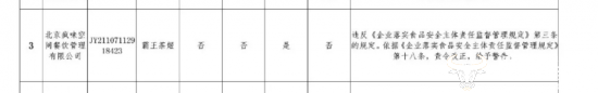 其中,北京疯味空间餐饮管理有限公司(招牌名称:霸王茶姬)存在“两个责任”落实不到位的问题,违反了《企业落实食品安全主体责任监督管理规定》相关规定,被责任改正并给予警告。