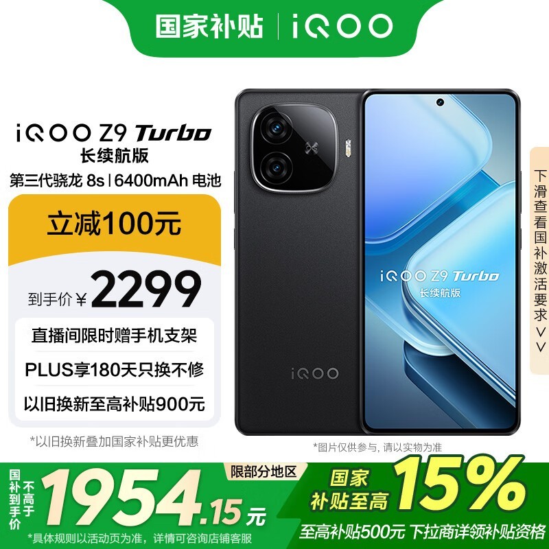 iQOO Z9 Turbo长续航版5G手机曜夜黑16GB+512GB京东特惠2299元