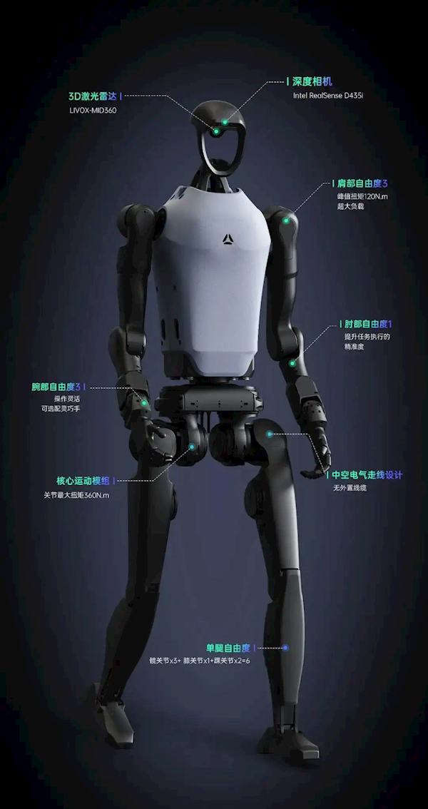 据宇树科技公司官网显示,宇树H1-2人形机器人身高1.788m,整机重量70kg,移动速度小于2m/s;手臂负载峰值可达约21kg,可选配RH56或其他灵巧手。