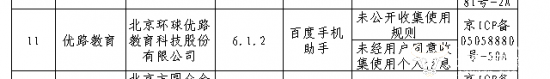 今年1月26日,北京市通信管理局在其官方网站通报侵害用户权益和安全隐患类等问题的APP,其中优路教育(6.1.2)被抽测出存在未公开收集使用规则、未经用户同意收集使用个人信息两项问题。