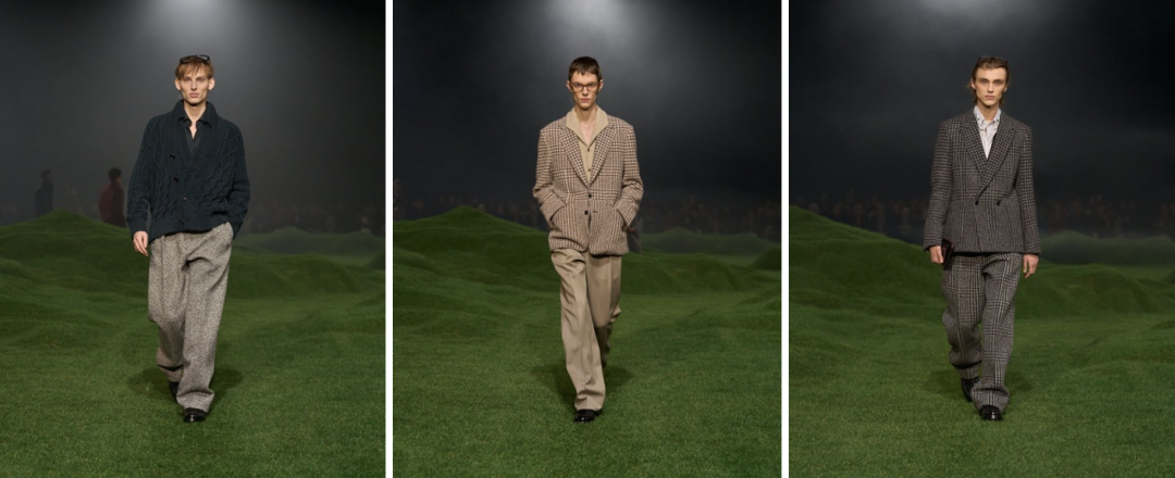 秀场设置于绵延起伏的绿地间,仿佛置身于澳大利亚葱郁广袤的平原,模特们缓步走来,从考究的款型到随性的穿着,独特的意式生活方式自然呈现。