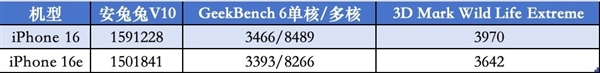 可以看到在测试CPU性能的GeekBench 6中,两机并没有什么明显区别,但在3D Mark Wild Life Extreme中,两者的差距就比较明显了。