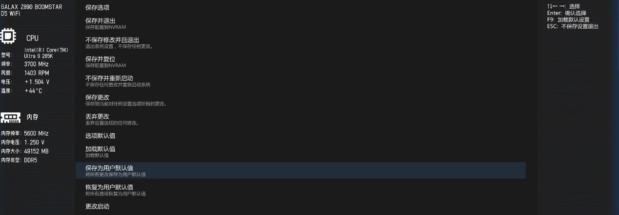 其他方面,在最后的保存页面中,影驰星曜Z890星辉WIFI主板BIOS里有记录BIOS功能相关设置,对于想要深度调节的用户重置BIOS后还原设置很方便。