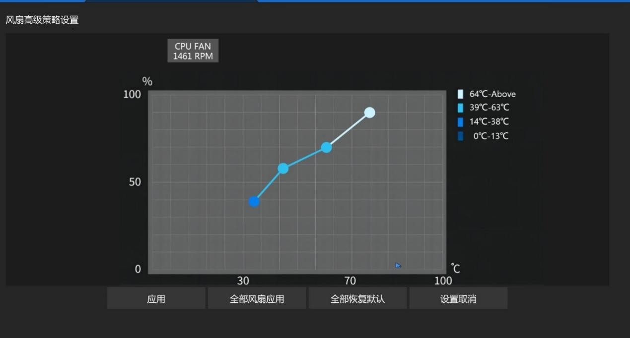 按F6可以进入风扇的详细设置页,支持对风扇进行曲线转速调节。