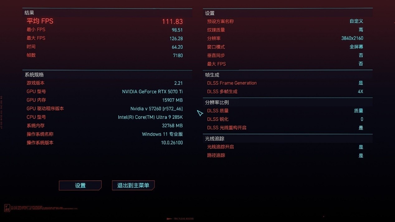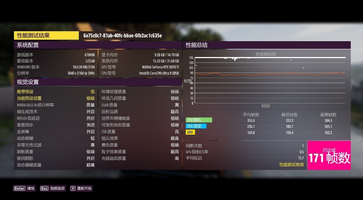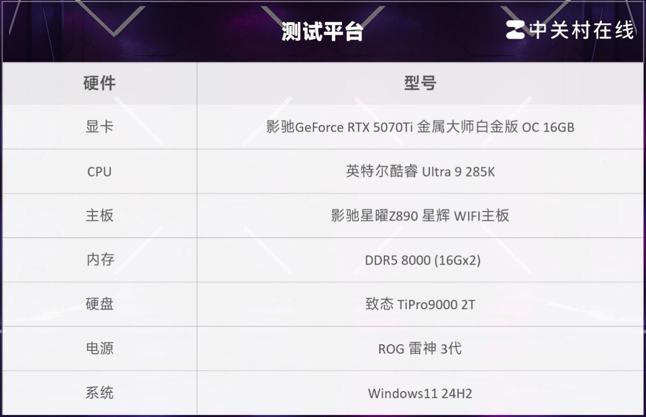 我们下面测试了整套平台的游戏表现,搭配影驰最新发布的影驰GeForce RTX 5070 Ti 金属大师白金版 OC 16GB显卡,测试游戏为《极限竞速:地平线5》、《古墓丽影:暗影》、《赛博朋克:2077》,画质预设最高,开启DLSS多帧生成和实时光线追踪追踪,DLSS模式为质量,分辨率为4K。