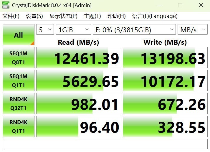 这款5.0固态,读取速度达到12461.39MB/s,写入速度达到13198.63MB/s,在酷睿Ultra平台跑出了应有的表现,至于达不到14000MB/s,也是因为英特尔这代酷睿Ultra的接口带宽限制,直连CPU的M.2插槽搭配PCIe 5.0固态最多也就这表现了。在Z890平台想要突破这种限制只能使用转接卡从PCIe1槽的5.0显卡插槽中转接出来,不过实际没必要这么做,一方面对于5.0转接卡要求很高,价格贵,另一方面也影响了显卡,得不偿失。