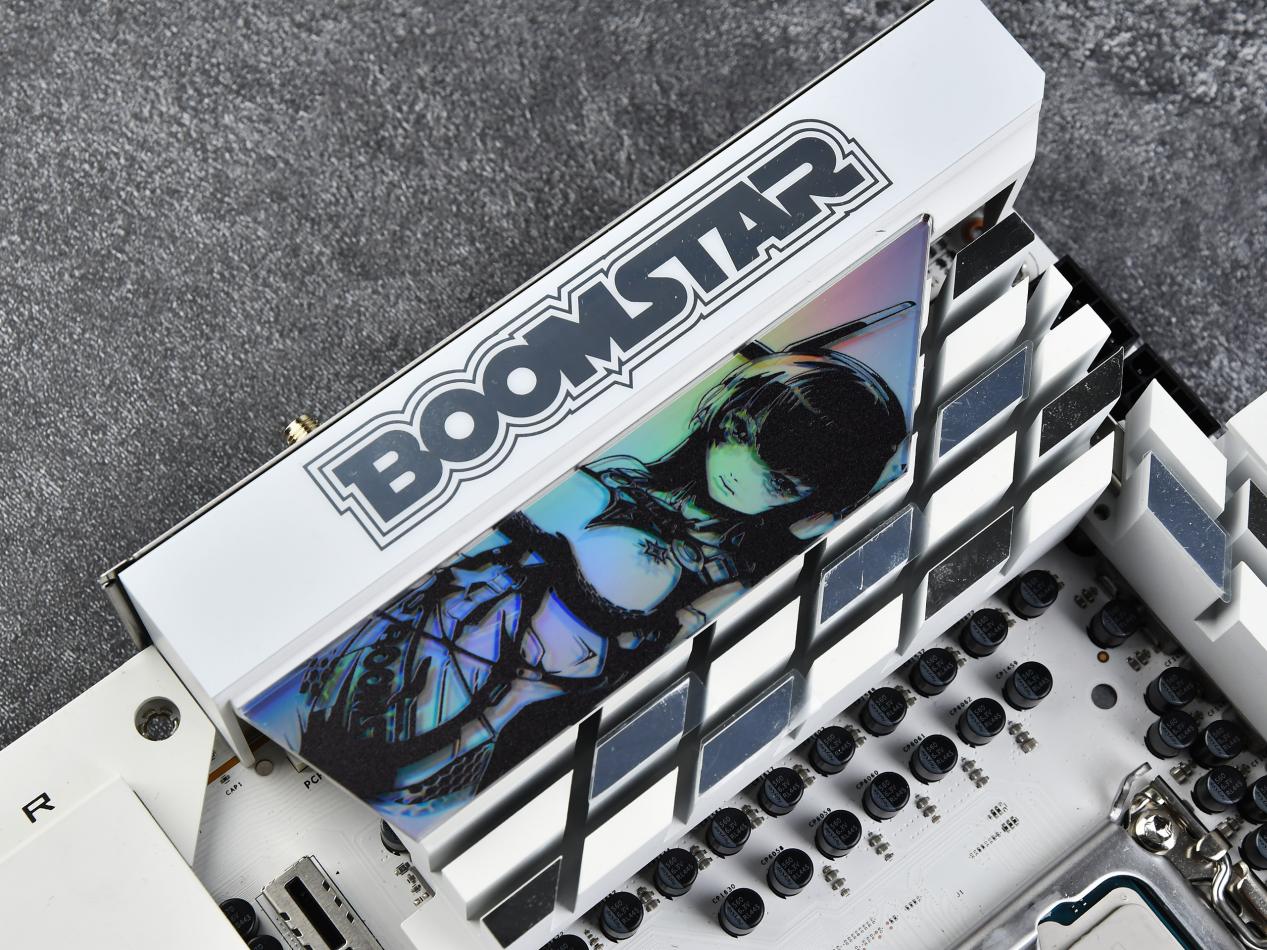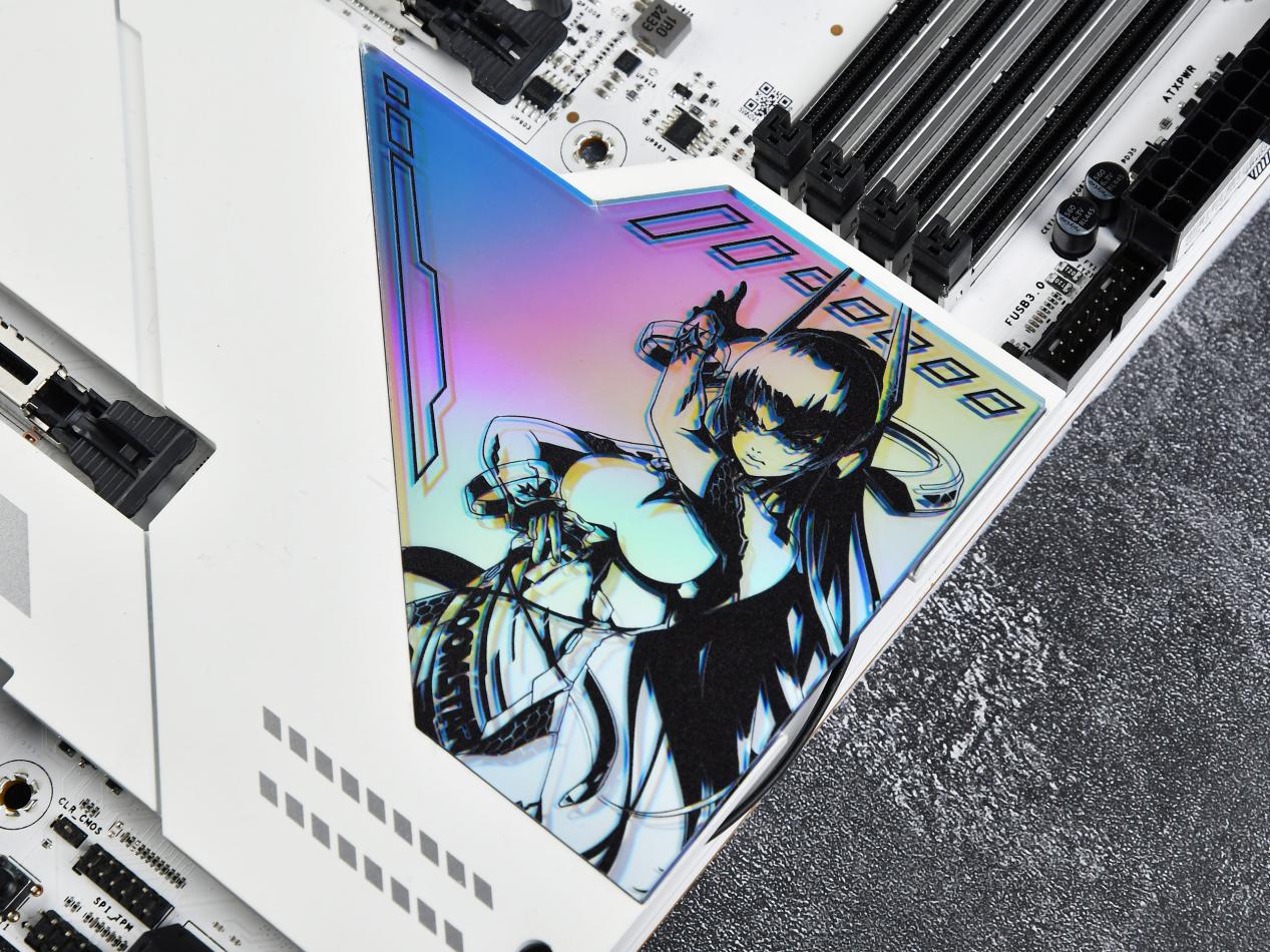 正面VRM和南桥散热片上方的装甲片采用了磁吸设计,除了原本配备的两片散热装甲外,还另外附赠了两片可替换的星曜娘磁吸装甲,方便用户进行DIY。