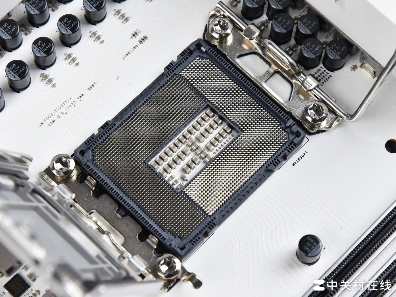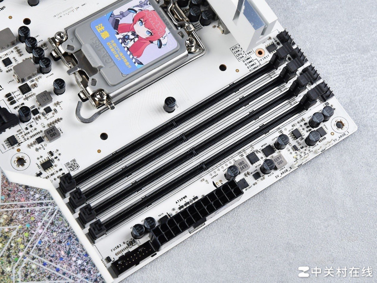 影驰星曜Z890星辉WIFI主板的星曜娘涂装的CPU顶盖下方是酷睿Ultra平台的LGA1851插槽,目前也只有酷睿Ultra平台能够兼容,不过可以兼容前代LGA1700规格的散热器。