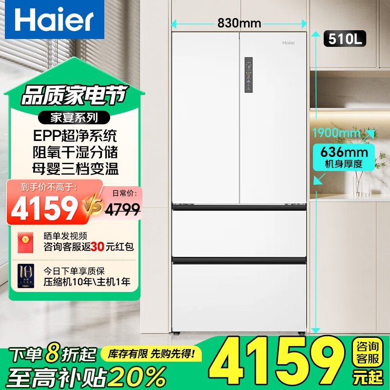 海尔510L法式多门冰箱 京东14号晚8点超值价