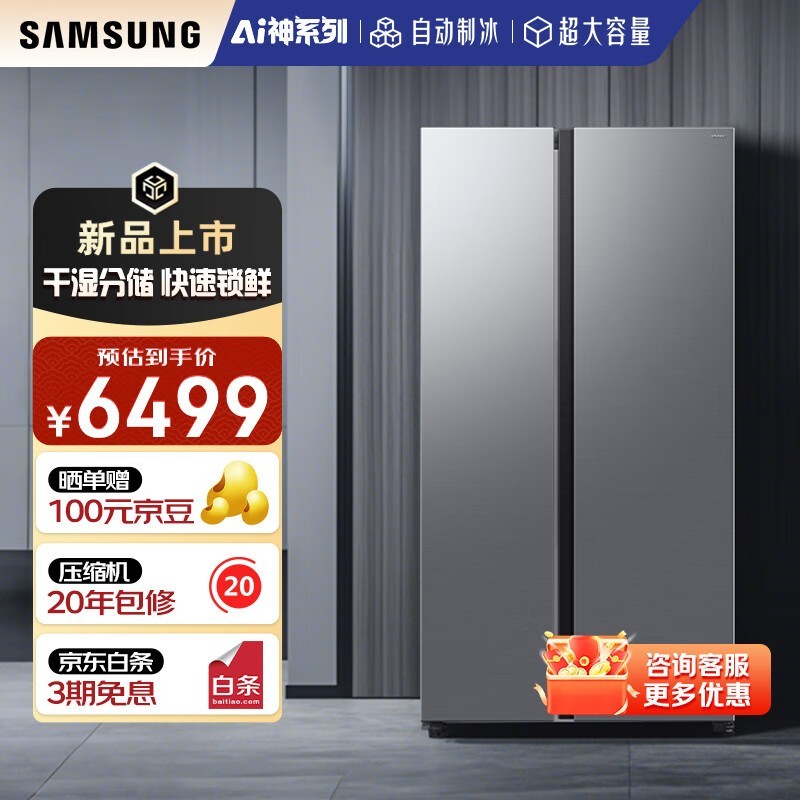 三星SAMSUNG对开门冰箱RS70F65P1TSC智能静音节能环保