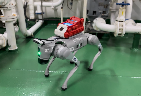 在船舶舱室中,超过90分贝的噪声强度、是沿海陆地八倍之高的盐度,让人工巡检作业变得异常困难。闷热、潮湿、嘈杂,如果能让机器狗代替人工作业,巡检的效率和精确度都会稳定许多。