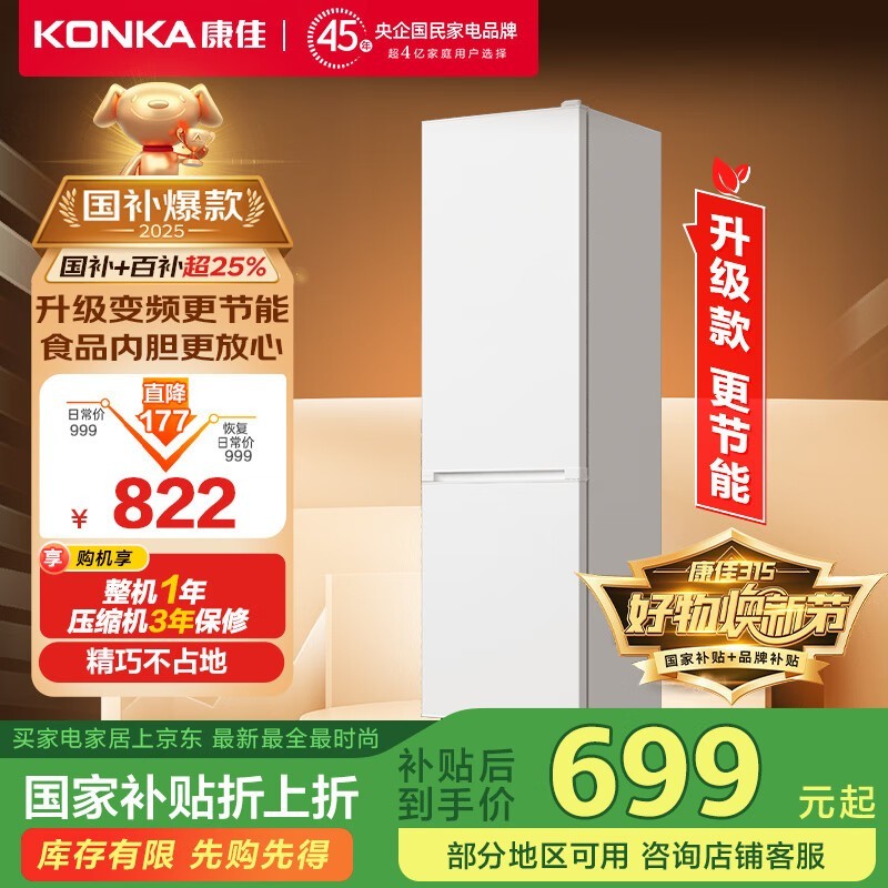 康佳康小白系列BCD-185PG2S冰箱租房党必备小冰箱促销中