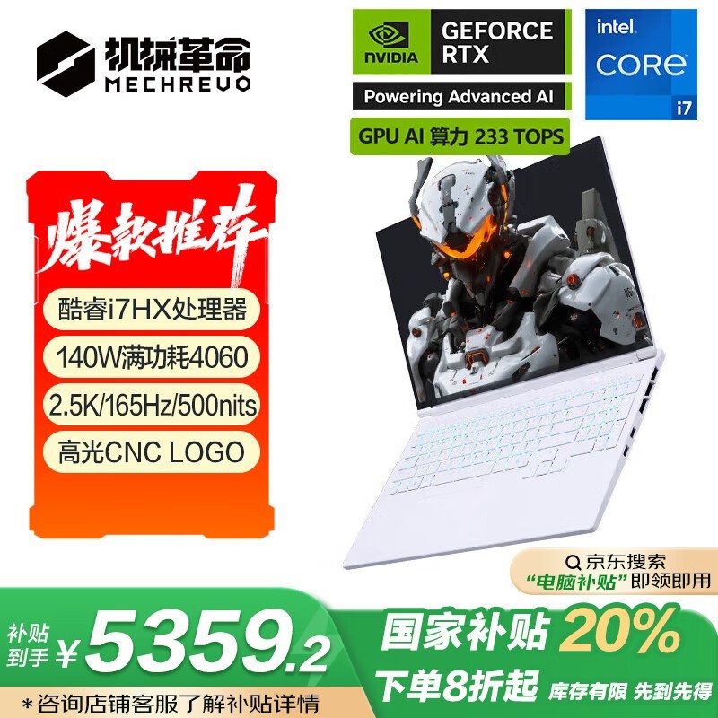 机械革命极光X游戏本十三代酷睿版京东补贴39%仅5332元