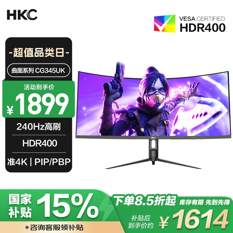 HKC CG345UK显示器京东特惠仅1605元