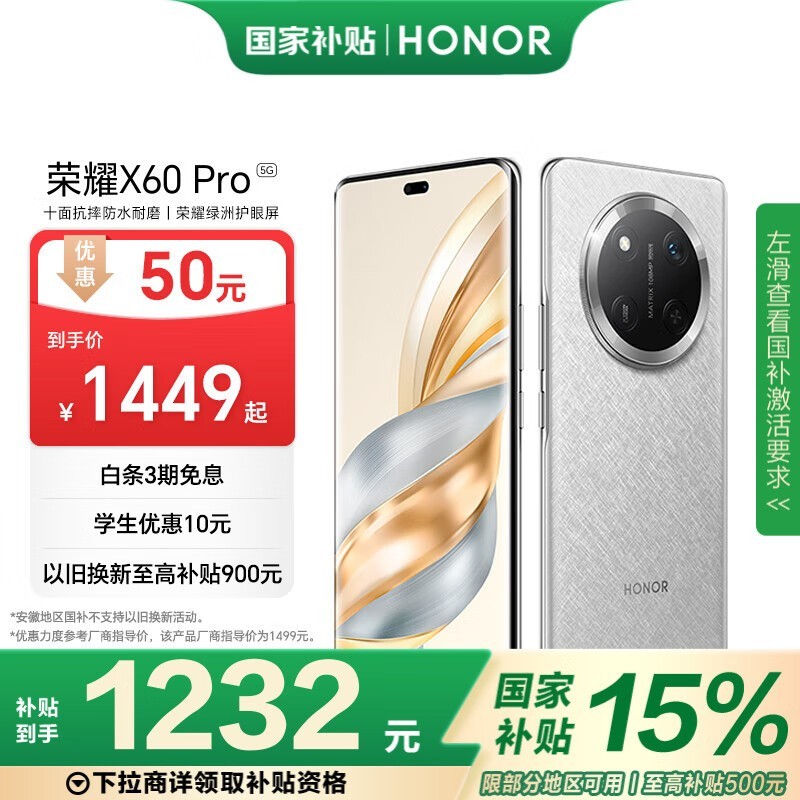 荣耀HONOR X60 Pro 5G手机京东8.5折促销