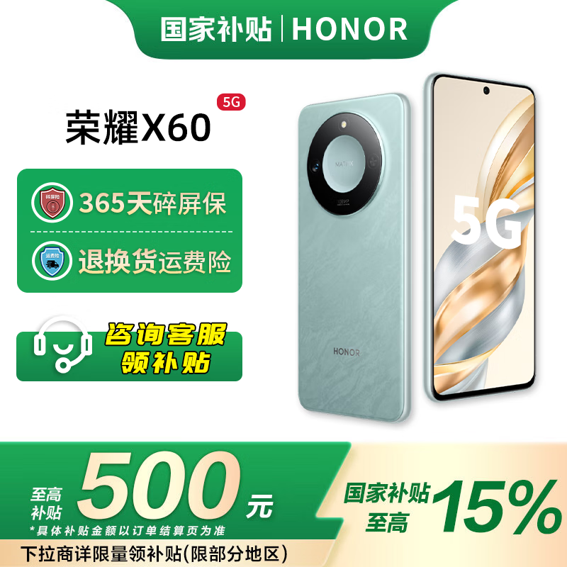 荣耀HONOR X60 8GB+256GB京东优惠价1239元