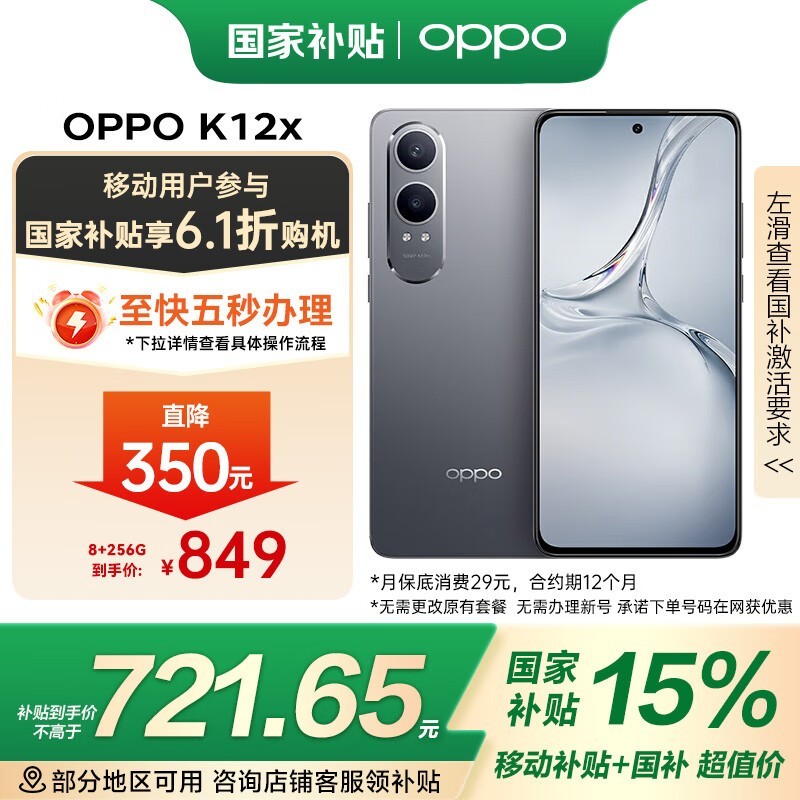 OPPO K12x 5G钛空灰8GB+256GB到手价849元