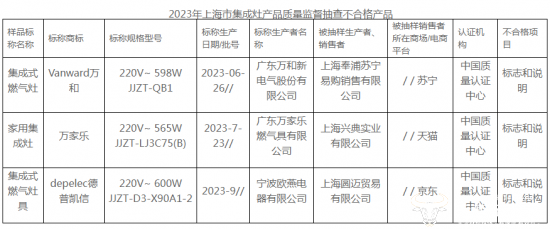 而不合格的3个批次产品,就有一个产品为广东万家乐燃气具有限公司生产的型号为220V~565WJJZT-LJ3C75(B)的集成灶,不合格问题是标志和说明。