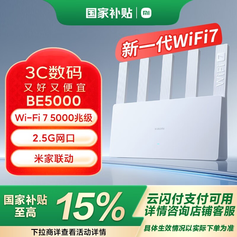 小米Xiaomi BE5000千兆无线路由器Wi-Fi7游戏加速器