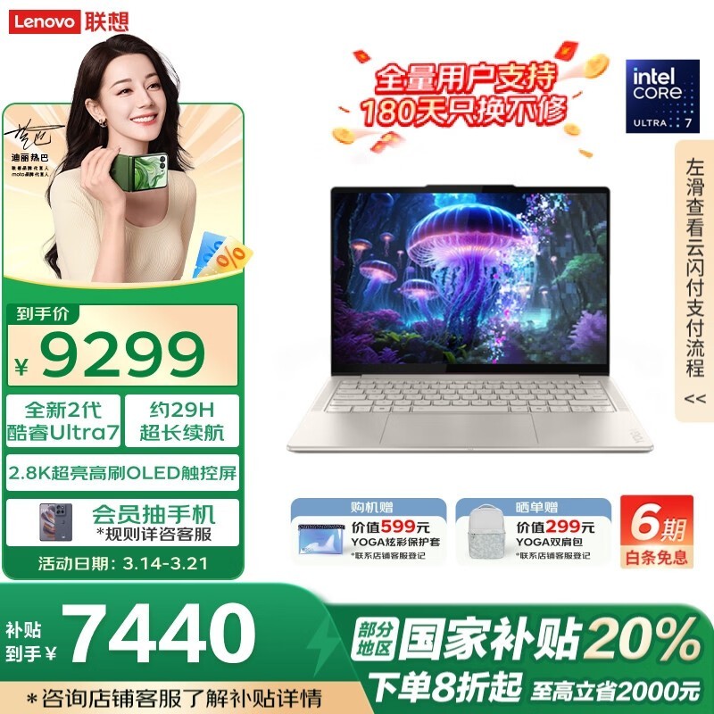 联想YOGA Air14 Aura二代酷睿版京东优惠价7440元