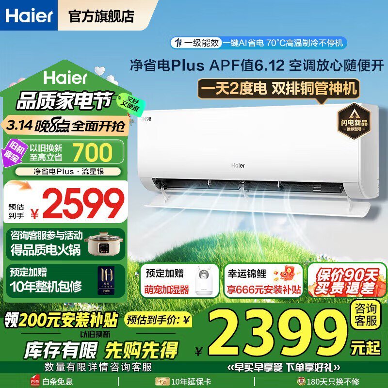 海尔净省电plus 1匹空调到手价1709元