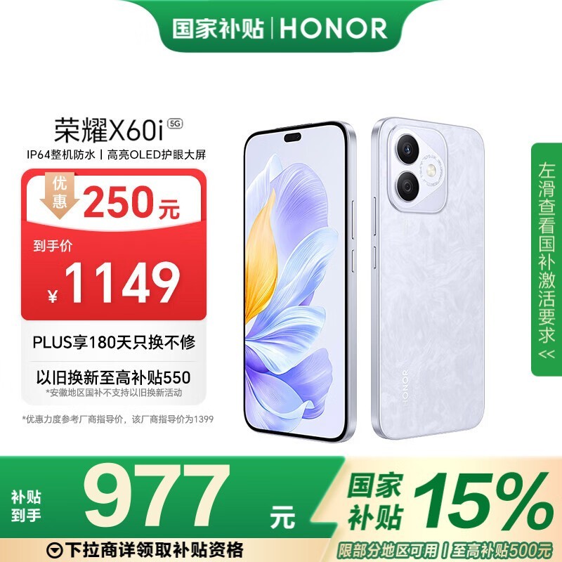 荣耀X60i 5G手机8GB+256GB珊瑚紫京东优惠至920元