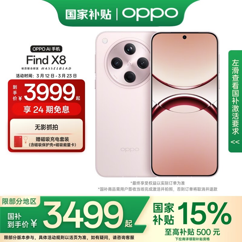 OPPO Find X8 5G气泡粉手机,低至4199元可入手