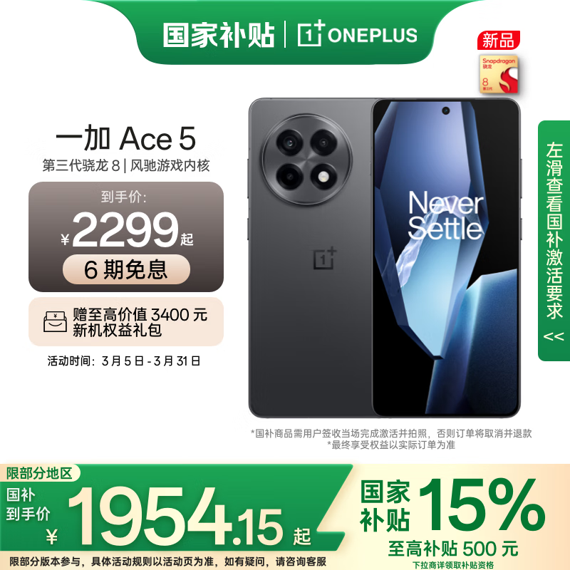 一加Ace 5 12GB+512GB全速黑京东优惠价2379元