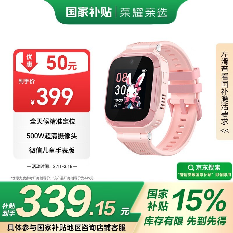 荣耀亲选zowbot儿童手表2珊瑚粉低至339元