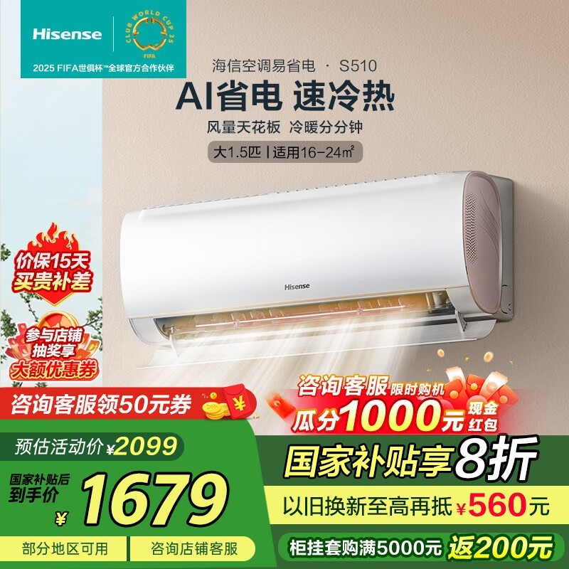 海信Hisense易省电S510空调挂机大1.5匹变频空调