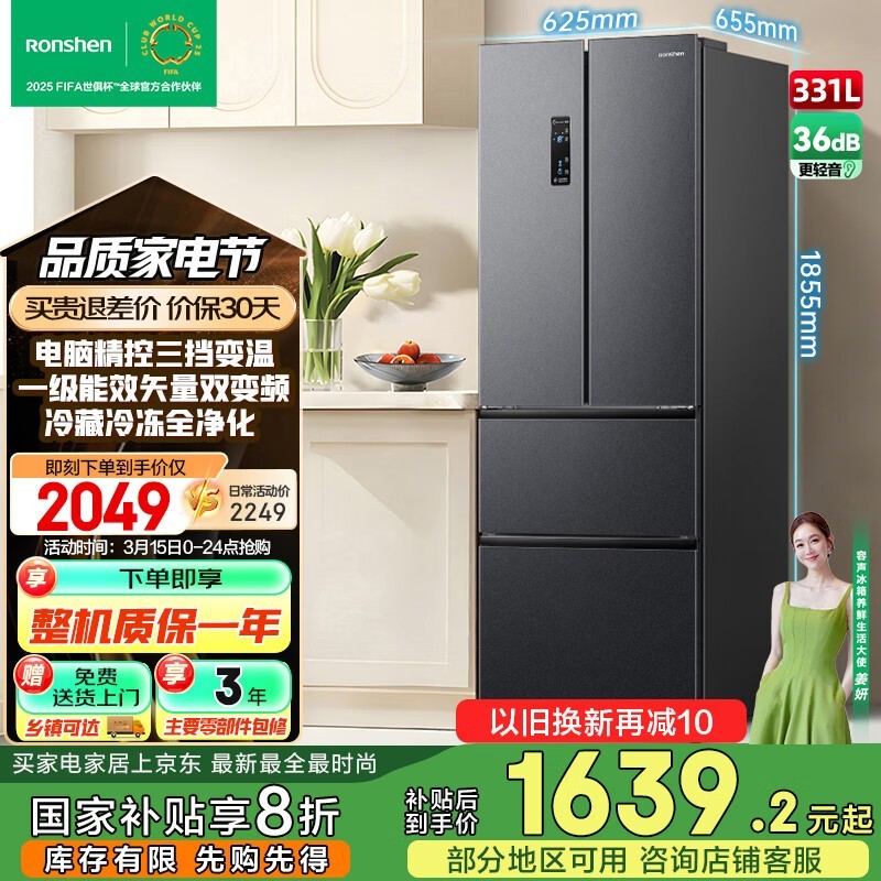 容声331升冰箱京东活动价低至1639元