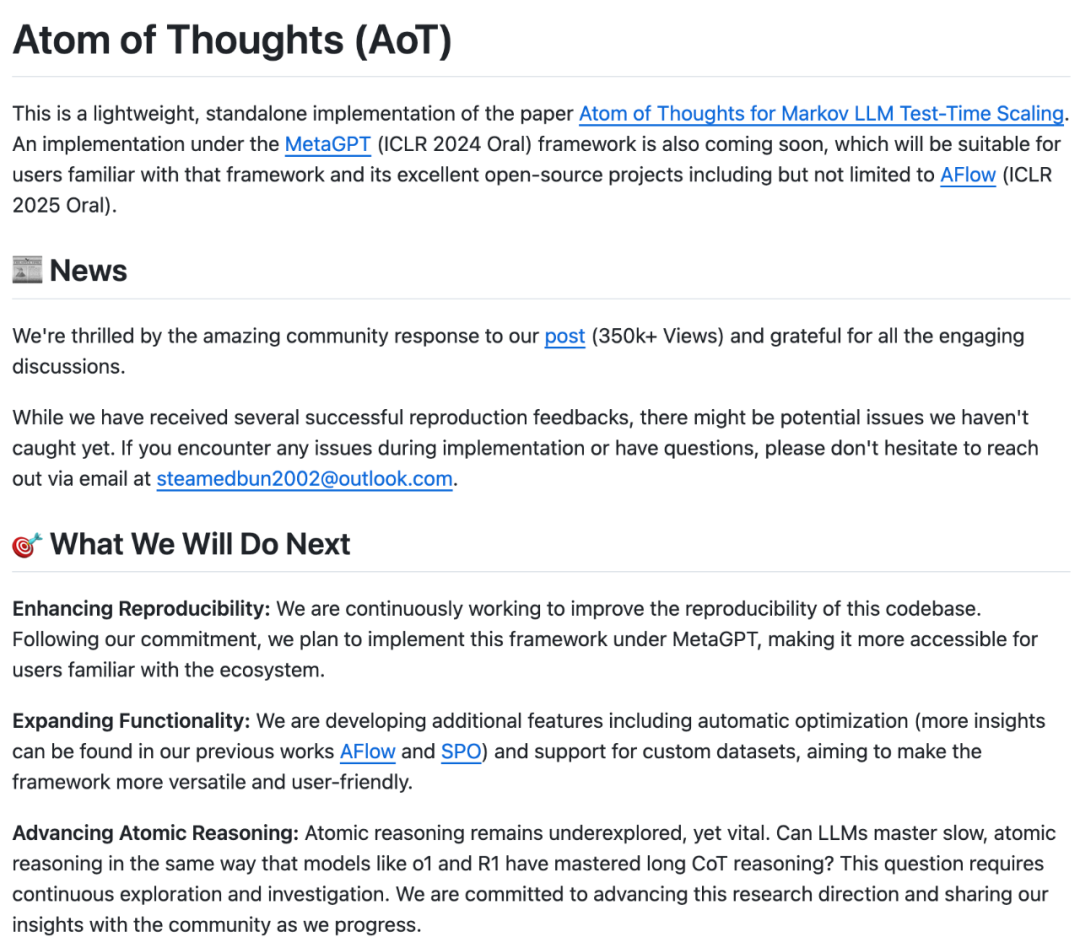 AoT 延续了 MetaGPT 社区的开源精神,代码已公开于 GitHub。欢迎开发者与研究者尝试 AoT,无论是独立使用还是集成到现有方法,并持续关注后续研究和功能更新。