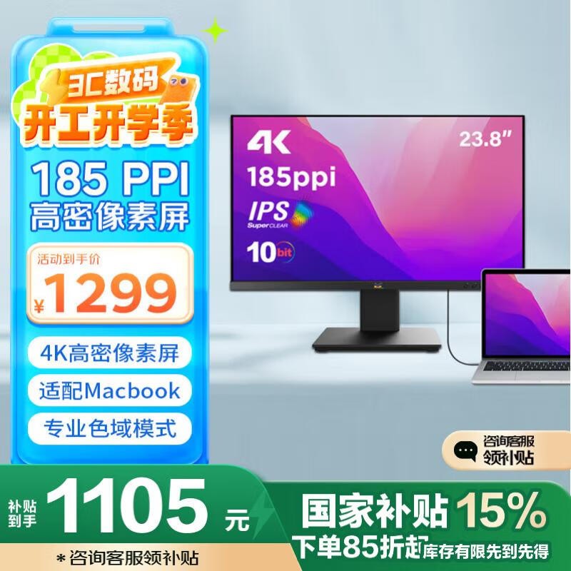 优派VX2478 - 4K - HD显示器优惠价1289元