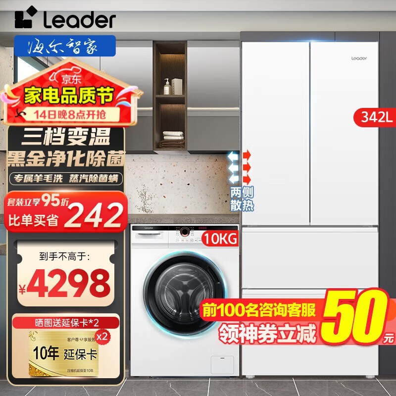 海尔冰洗套装促销:342L冰箱+10kg洗衣机仅4298元
