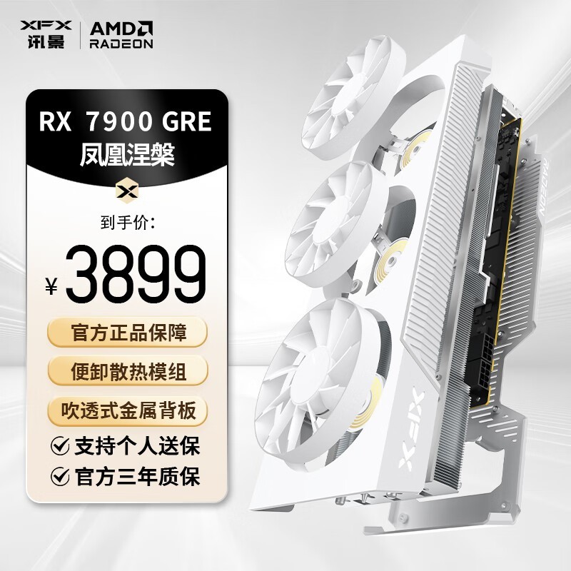 讯景RADEON RX7900 GRE显卡白色电竞风格设计