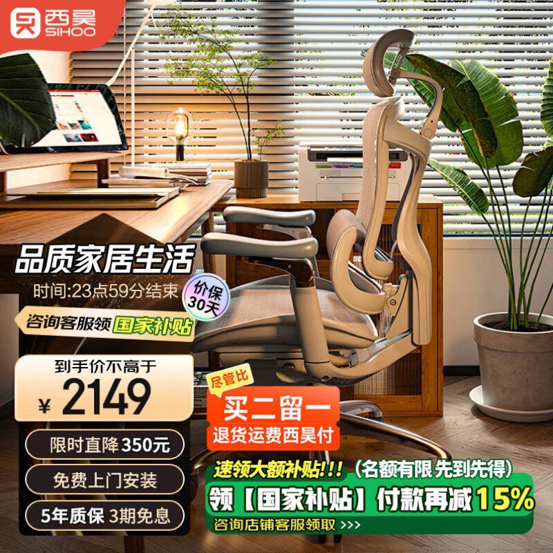 西昊Doro C300人体工学电脑椅灰色带脚踏款限时优惠
