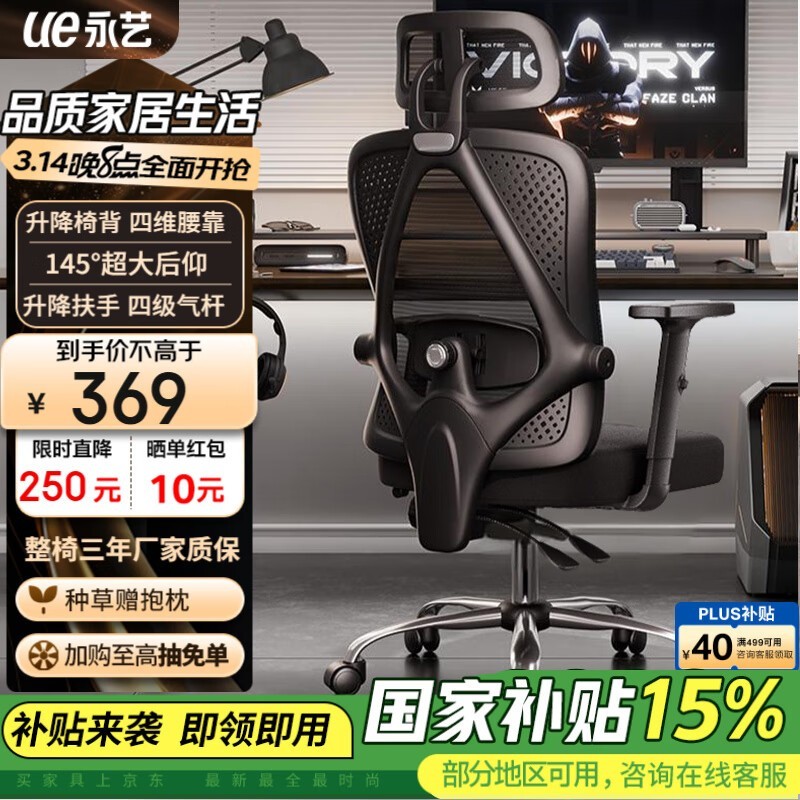 永艺撑腰椅M60人体工学椅优惠价257元