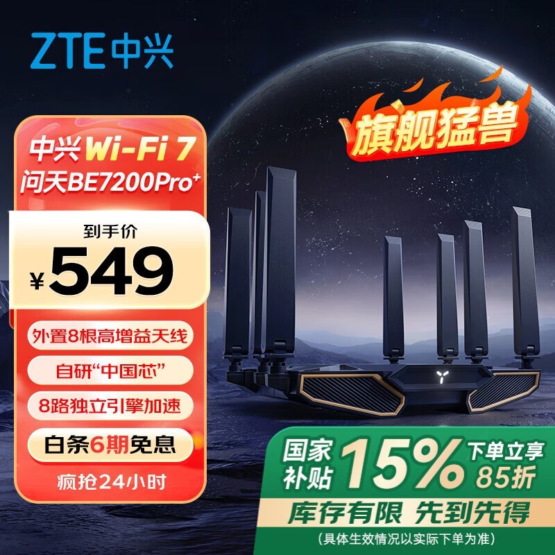 中兴问天BE7200Pro+双频7200M家用千兆Mesh无线路由器促销