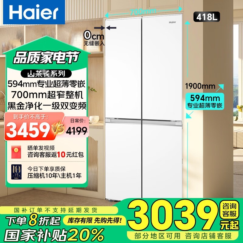 海尔山茶花冰箱418L,京东优惠低至2677元