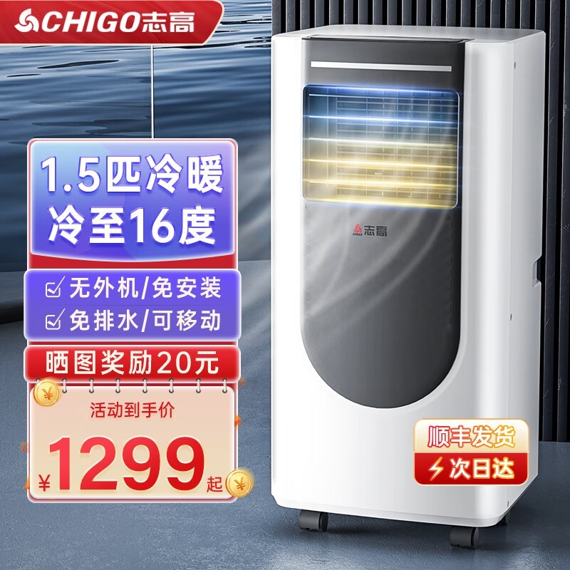 志高可移动空调单冷暖型1.5匹低至1299元带回家