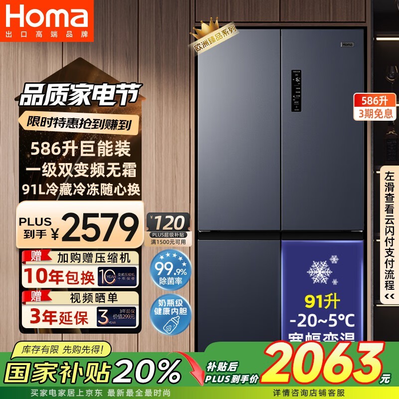 奥马BCD - 586WDH/B冰箱京东优惠低至2649元