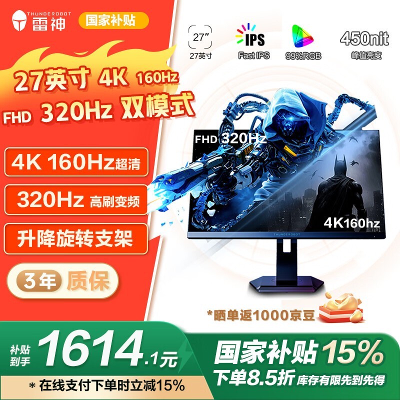 雷神ZU27F160L 27英寸显示器京东促销价1596元