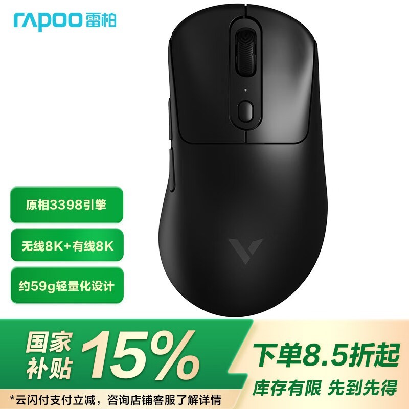雷柏VT3PRO幽魂无线双模鼠标黑色经典设计时尚实用