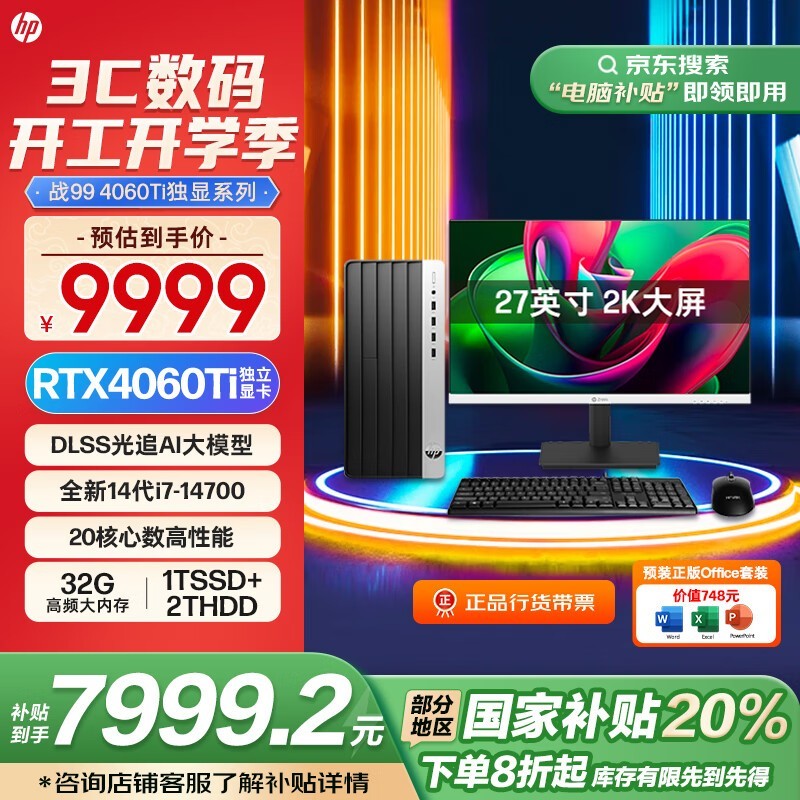 惠普战99游戏台式电脑i7-14700京东活动价7999元