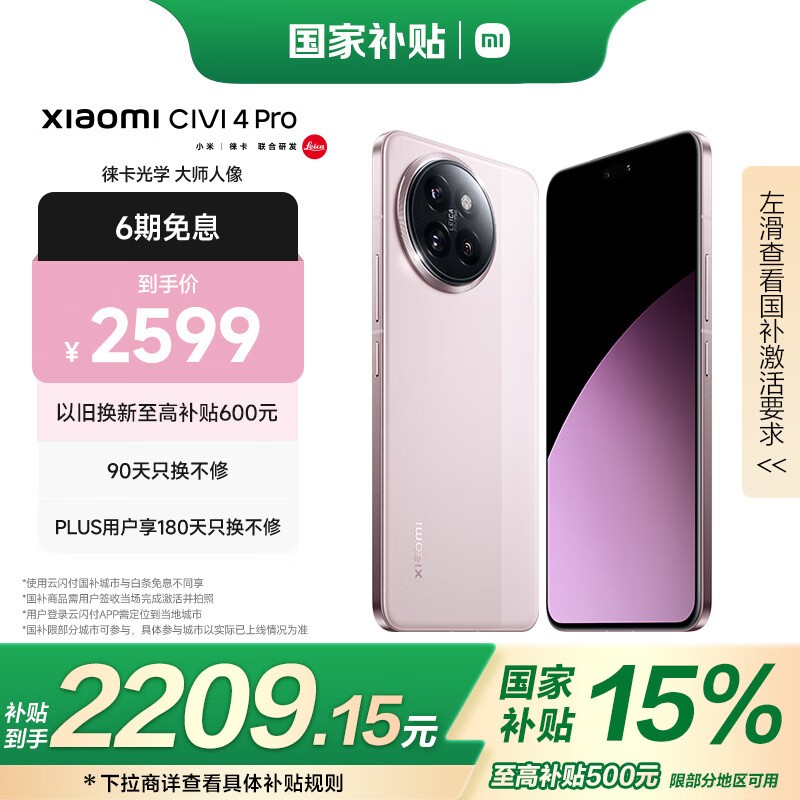 小米Civi 4 Pro 5G手机京东特惠2198元享国补